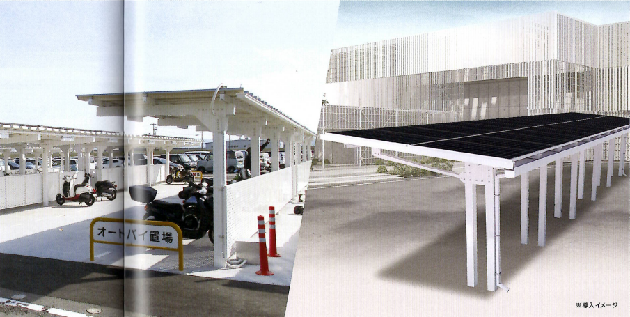 折半屋根タイプとパネル屋根一体のサイクルポート
